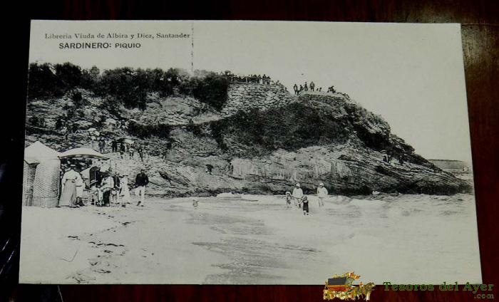 ANTIGUA POSTAL DE SANTANDER, SARDINERO, PIQUIO, LIBRERIA VIUDA DE ALBIRA Y DIEZ, FOT. HAUSER Y MENET, NO CIRCULADA.