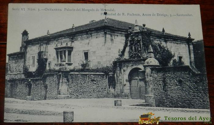 POSTAL DE ONTANEDA. PALACIO DEL MARQUéS DE MERCADAL. CANTABRIA. SIN CIRCULAR. REVERSO SIN DIVIDIR. SERIE VI. NUM 3. PROPIEDAD DE R. PACHECO.