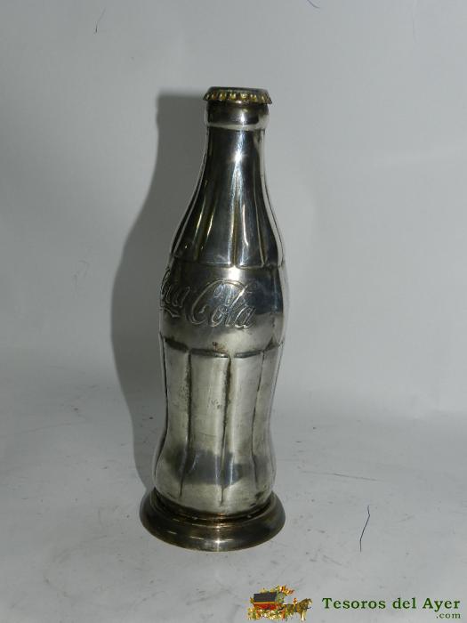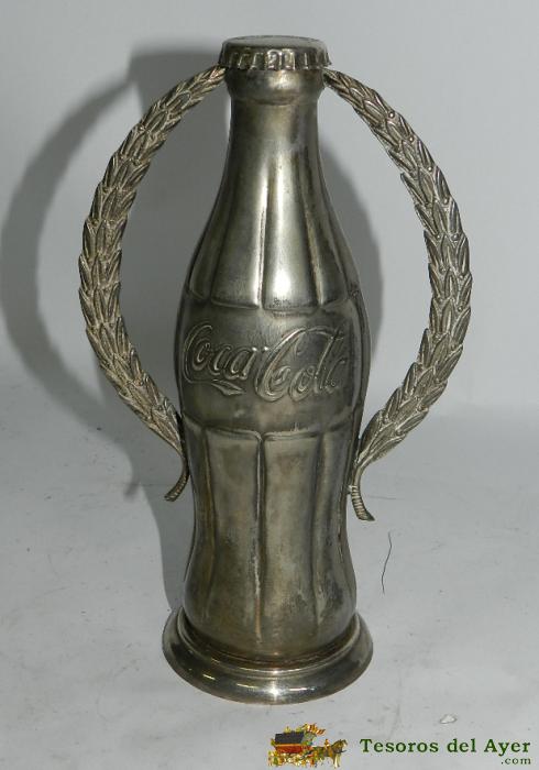 BOTELLA TROFEO DE COCA COLA, REALIZADA EN METAL, MIDE 21 CMS DE ALTO.