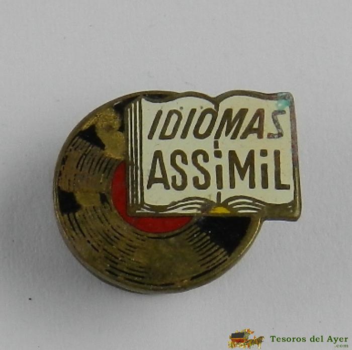 INSIGNIA DE SOLAPA PARA OJAL DE IDIOMAS ASSIMIL. ESMALTADA, AñOS 60. MIDE 1,6 CMS.