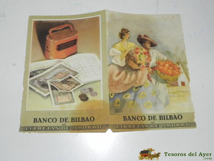 ANTIGUO FOLLETO PUBLICIDAD BANCO DE BILBAO, LIBRETAS DE AHORRO, AÑOS 40, MIDE 16 X 11 CMS. 4 PAGINAS.