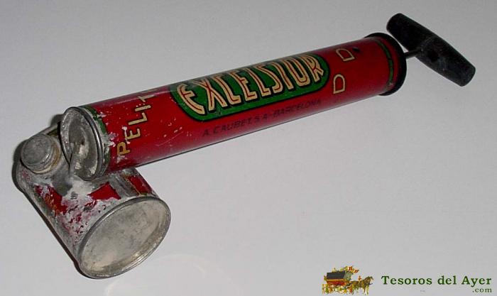 ANTIGUO FUMIGADOR DE HOJALATA LITOGRAFIADA CON PUBLICIDAD DE EXCELSIOR, A. CAUBET S.A. BARCELONA, MIDE 32 CMS DE LARGO. -- C3.