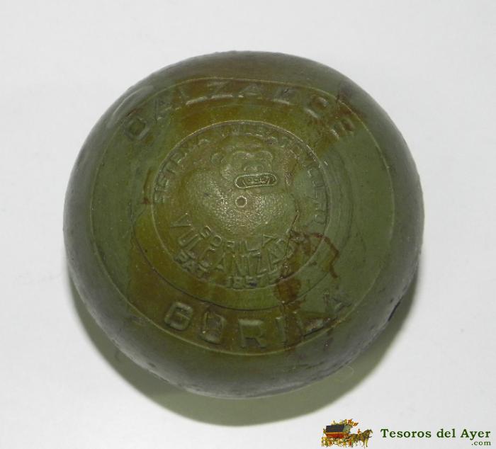 ANTIGUA PELOTA DE GOMA CON PUBLICIDAD DE CALZADOS GORILA, MIDE 5,5 CMS. DE DIAMETRO. ESTA ALGO DEFORMADA.