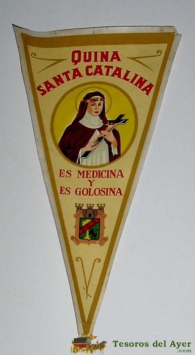 ANTIGUO BANDERIN DE QUINA SANTA CATALINA, ES MEDICINA Y ES GOLOSINA, MIDE 30 CMS.