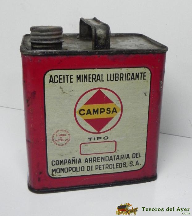 ANTIGUA LATA DE CHAPA LITOGRAFIADA DE CAMPSA - ACEITE MINERAL LUBRICANTE, COMPAÑIA ARRENDATARIA DEL MONOPOLIO DE PETROLEOS S.A. MIDE 17,5 X 15 X 10,5 CMS.