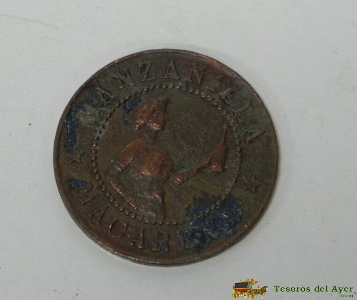 ANTIGUA MEDALLA O FICHA , PUBLICIDAD MANZANILLA MACARENA Y COÑAC CABALLERO, MIDE 2,5 CMS. DE DIAMETRO.