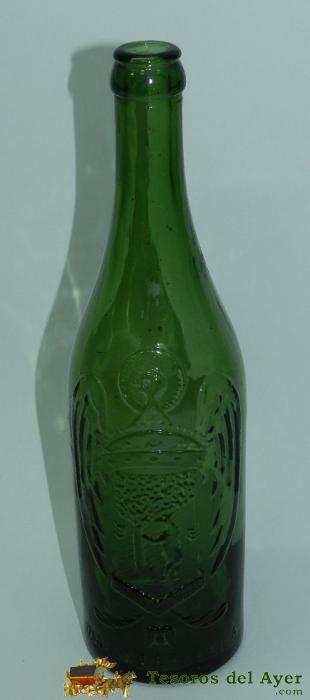 ANTIGUA BOTELLA DE VIDRIO CERVEZA EL AGUILA, ESCUDO Y LETRAS EN RELIEVE, CREO QUE ES DE 0,75 L. MIDE 28 CMS DE ALTO.