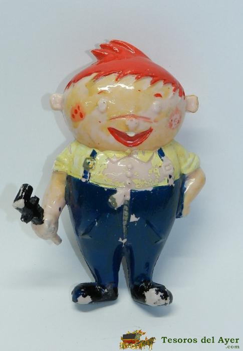 ANTIGUO MUÑECO DE PUBLICIDAD DE FINANZAUTO, MECANICA, COCHES, LE HICIERON UNA RAJA EN LA CABEZA PARA UTILIZARLO DE HUCHA, MIDE 19 CMS.