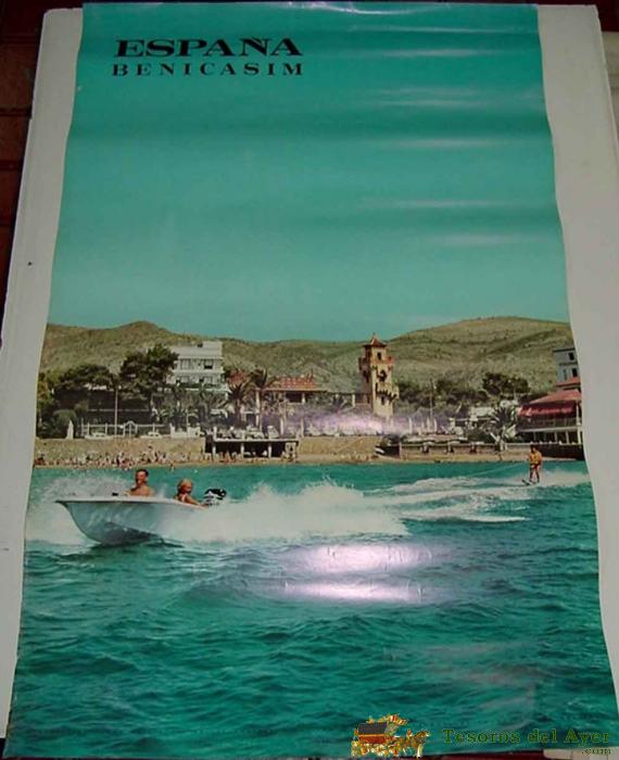 ANTIGUO CARTEL CON PUBLICIDAD DE BENICASIM, CASTELLON - PUBLICACION DEL MINISTERIO DE INFORMACION Y TURISMO - MIDE 100 X 67 CMS.
