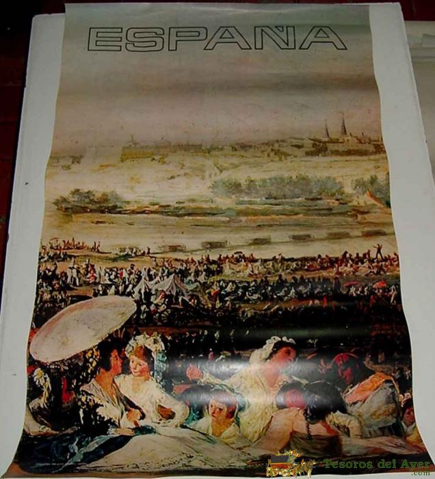 ANTIGUO CARTEL CON PUBLICIDAD DE CUADRO DE GOYA, PRADERA DE SAN ISIDRO -PUBLICACION DEL MINISTERIO DE INFORMACION Y TURISMO - MIDE 100 X 67 CMS.