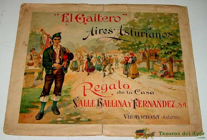 ANTIGUA PARTITURA COMPLETA DEL GAITERO - REGALO DE LA CASA VALLE BALLINA Y FERNANDEZ - VILLAVICIOSA - ASTURIAS - MIDE 36.5 X 30 CMS - 2 PAGINAS - EL INTERIOR ESTA REFORZADO CON CINTA CELO, YA QUE TENIA UN FUERTE DOBLEZ