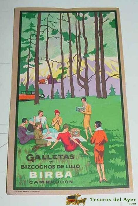 TARJETA DE PUBLICIDAD EN PAPEL DE GALLETAS Y BIZCOCHOS DE LUJO BIRBA CAMPRODON - MIDE 17 X 9,5 CMS.