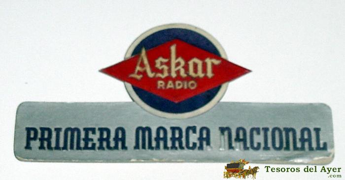 ANTIGUO DISPLAY DE PUBLICIDAD DE RADIO ASKAR, PRIMERA MARCA NACIONAL, MIDE 18 X 9 CMS.