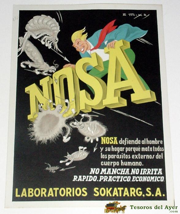 ANTIGUO CARTELITO DE CARTON PARA COLGAR CON PUBLICIDAD DE NOSA, LABORATORIOS SOKATARG S.A. MATA PARASITOS, MIDE 30 X 22 CMS. TAL COMO SE VE EN LA FOTO.