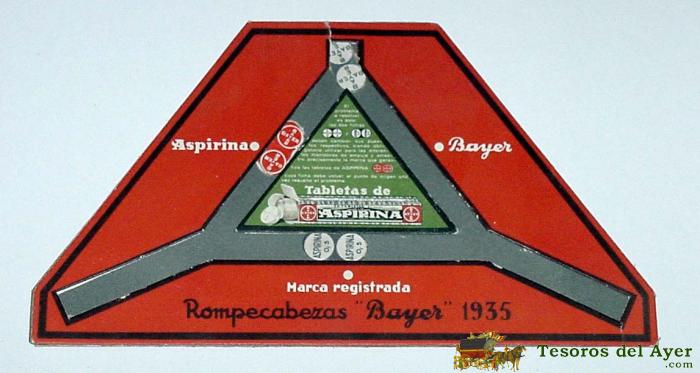 ANTIGUO DISPLAY DE CARTON CON PUBLICIDAD DE ASPIRINA BAYER, FARMACIA, ROMPECABEZAS BAYER 1935, MIDE 20 X 11,5 CMS