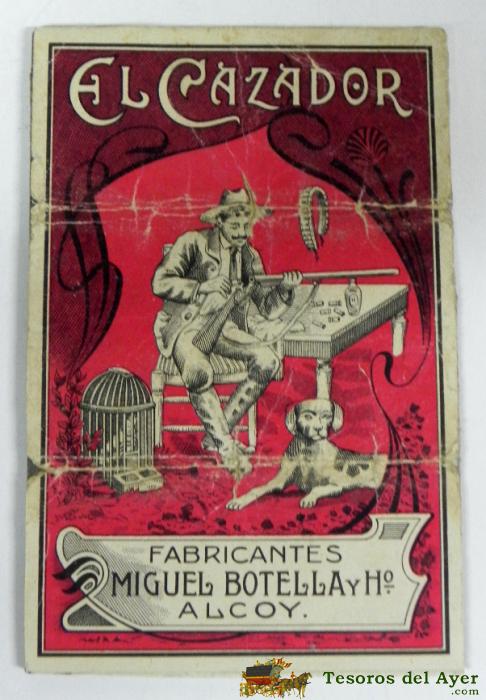 ANTIGUO LAMINA DE CARTON DE PUBLICIDAD DE EL CAZADOR, FABRICANTES DE MIGUEL BOTELLA Y Hº. ALCOY, MIDE 12,5 X 8 CMS.