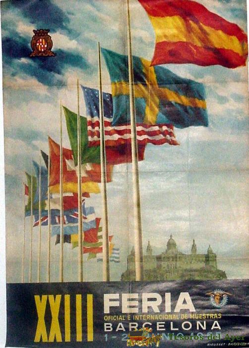 ANTIGUO CARTEL DE LA XXIII FERIA INTERNACIONAL DE MUESTRAS DE BARCELONA DEL 1 AL 20 DE JUNIO DE 1955, ILUSTRADO POR VELLVE JIMÉNEZ – 70 X 100 CMS.