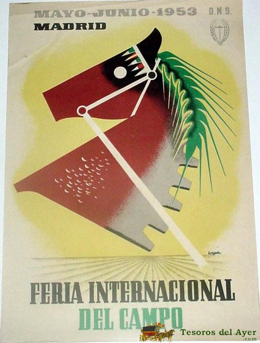 ANTIGUO CARTEL DE MADRID FERIA INTERNACIONAL DEL CAMPO MAYO JUNIO 1.953, ILUSTRADO POR LOZANO – 35X50
