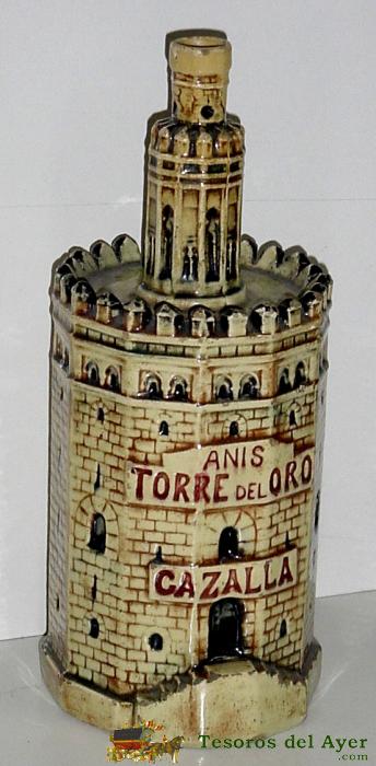 ANTIGUA BOTELLA CION PUBLICIDAD DE CAZALLA EN CERAMICA REPRESENTA LA TORRE DEL ORO DE SEVILLA - 27 X 11 CM. EXCELENTE ESTADO DE CONSERVACION. (CAJA 7)