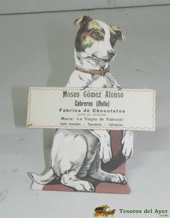 ANTIGUO DISPLAY DE PUBLICIDAD DE FABRICA DE CHOCOLATES MOSEO GOMEZ ALONSO, CEBREROS, AVILA, REALIZADO EN CARTON, CON SOLAPA EN LA PARTE TRASERA PARA SOSTENEROLO, MIDE 19 CMS.