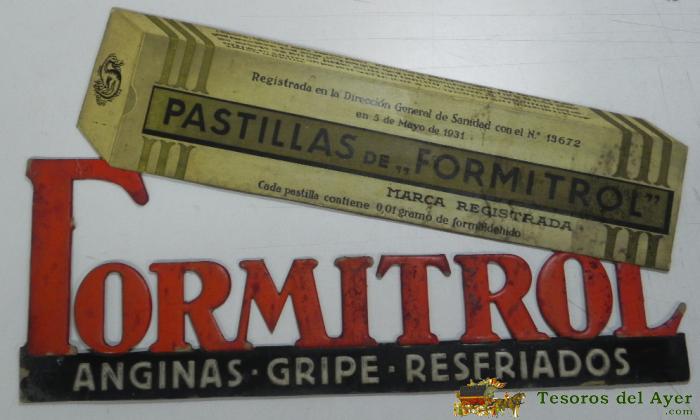 ANTIGUO DISPLAY DE PUBLICIDAD DE FORMITROL, FARMACIA, ANGINAS, GRIPE, RESFRIADO, EN CARTON, GRAN TAMAÑO MIDE 38 X 24 CMS.