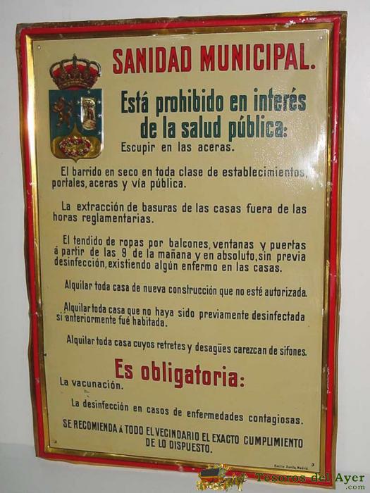 ANTIGUA CHAPA DE HOJALATA LITOGRAFIADA AÑOS 20 APRX. - SANIDAD MUNICIPAL DEL AYUNTAMIENTO DE MADRID - CON PROHIBICIONES Y OBLIGACIONES DE INTERES PARA LA SALUD PUBLICA - FABRICANTE EMILIO ZURITA DE MADRID - MIDE 51 X 35,5 CM APROX. - EXCELENTE ESTADO DE C