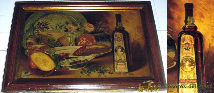 ANTIGUA CHAPA LITOGRAFIADA DE PUBLICIDAD DE RON NANA, CLASE EXTRA SUPERIOR - JOSE CARULLA SABATES, LERIDA, AUTOR F. CAMINS, MIDE 68 X 48 CMS. FABRICADO POR G. ANDREIS DE BADALONA, CHAPA LISA CON MARCO EN RELIEVE, DESTILERIAS, LICORES, VINOS, BODEGA, RARIS
