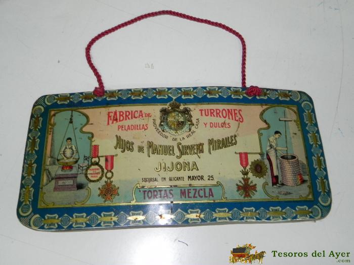 ANTIGUA CHAPA DE PUBLICIDAD DE LA FABRICA DE TURRONES, PELADILLAS Y DULCES, HIJOS DE MANUEL SIRVENT MIRALLES, JIJONA (ALICANTE), TORTAS MEZCLA, MIDE 31 X 14 CMS. - CIRAGES FRANCAIS DE SANTANDER. CAJA 4