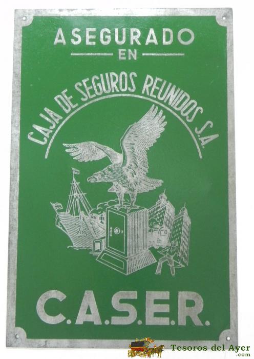 ANTIGUA CHAPA DE CAJA DE SEGUROS CASER, MIDE 23 X 15 CMS.