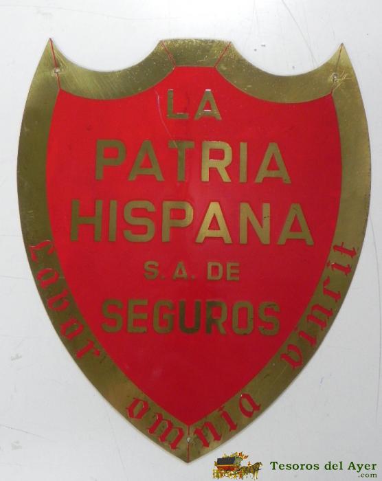 ANTIGUA CHAPA DE LATON LA PATRIA HISPANA S.A. DE SEGUROS, MIDE 30 X 25 CMS.