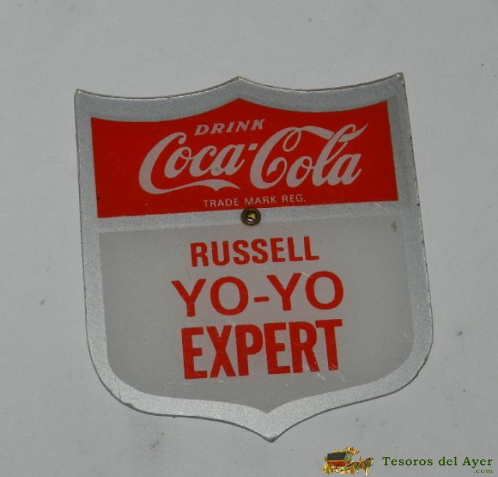 INSIGNA DE PLASTICO CON PUBLICIDAD DE COCA COLA, RUSSELL YO-YO EXPERT, MIDE 7 X 6 CMS.