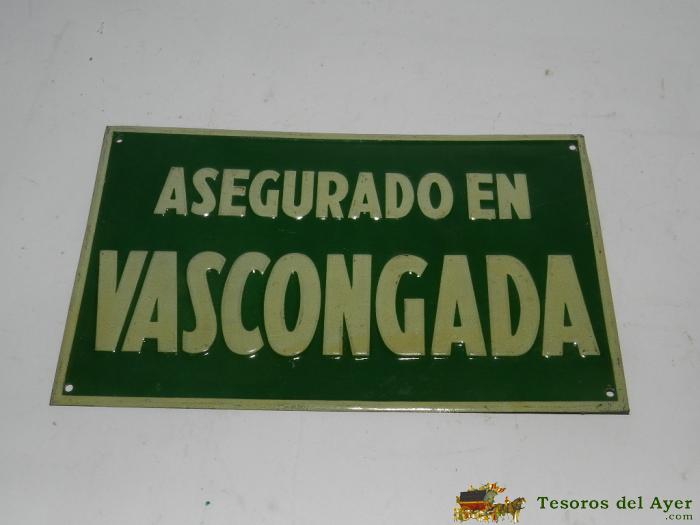 ANTIGUA CHAPA DE SEGUROS - ASEGURADO EN VASCONGADA, MIDE 23 X 14 CMS. EXCELENTE ESTADO DE CONSERVACION TAL COMO APARECE EN LAS FOTOS PUESTAS.