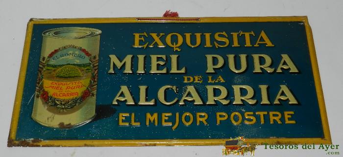 CHAPA PUBLICITARIA MIEL DE LA ALCARRIA, GUADALAJARA, ORIGINAL, AñOS 40, MIDE 34 X 17 CM. REALIZADA POR ANDREIS, BADALONA.