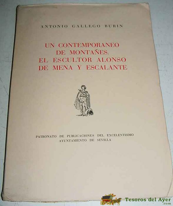 A. GALLEGO BURíN, UN CONTEMPORáNEO DE MONTAñéS. EL ESCULTOR ALONSO DE MENA Y ESCALANTE, SEVILLA, 1952, 37 PAGINAS MAS 34 ILUSTRACIONES FUERA DE PAGINA, PATRONATO DE PUBLICACIONES DEL AYUNTAMIENTO DE SEVILLA - CON DEDICATORIA AUTOGRAFA DEL AUTOR EN FAVOR D
