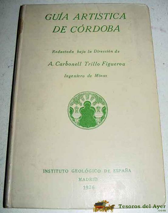 GUIA ARTISTICA DE CORDOBA. REDACTADA BAJO LA DIRECCIóN DE. CARBONELL TRILLO FIGUEROA, A. INST. GEOLóGICO DE ESPAñA - ARTES DE LA ILUSTRACIóN, MADRID 1926., 1926. ///LáMINAS EN NEGRO F/T. INCLUYE UN PLANO DESPLEGABLE DE CóRDOBA.///TELA EDITORIAL ILUSTRADA.