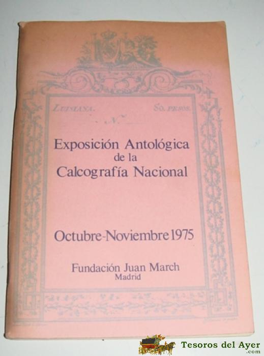 EXPOSICIÓN ANTOLÓGICA DE LA CALCOGRAFÍA NACIONAL - ARTES. DISEñO. GRABADO. 67 PáGS. + 8 LáMINAS, 21 X 14 CMS., FUNDACIóN JUAN MARCH. MADRID 1975.
