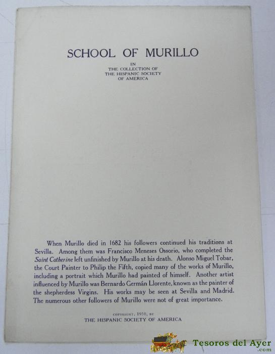 SCHOOL OF MURILLO IN THE COLLECTIN OF THE HISPANIC SOCIETY OF AMERICA WITH COMPARATIVE MATERIAL, 1930, 6 HOJAS, SE DESPLIEGA EN CARTEL, CADA PAGINA MIDE 19 X 14 CMS. MUY ILUSTRADO,