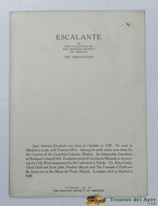 ESCALANTE (JUAN ANTONIO ESCALANTE) IN THE COLLECTIN OF THE HISPANIC SOCIETY OF AMERICA WITH COMPARATIVE MATERIAL, 1929, 6 HOJAS, SE DESPLIEGA EN CARTEL, CADA PAGINA MIDE 19 X 14 CMS. MUY ILUSTRADO,