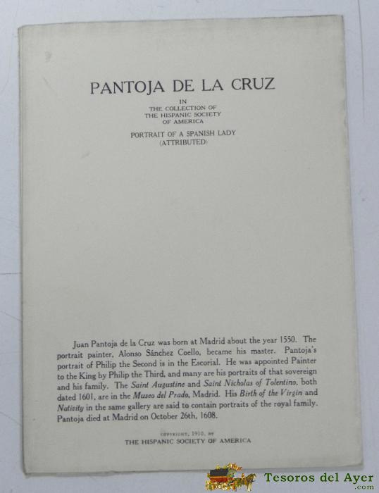 PANTOJA DE LA CRUZ IN THE COLLECTIN OF THE HISPANIC SOCIETY OF AMERICA WITH COMPARATIVE MATERIAL, 1930, 6 HOJAS, SE DESPLIEGA EN CARTEL, CADA PAGINA MIDE 19 X 14 CMS. MUY ILUSTRADO,