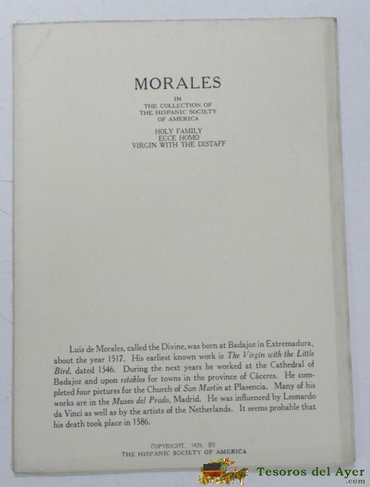 MORALES (LUIS DE MORALES EL DIVINO) IN THE COLLECTIN OF THE HISPANIC SOCIETY OF AMERICA WITH COMPARATIVE MATERIAL, 1929, 6 HOJAS, SE DESPLIEGA EN CARTEL, CADA PAGINA MIDE 19 X 14 CMS. MUY ILUSTRADO,