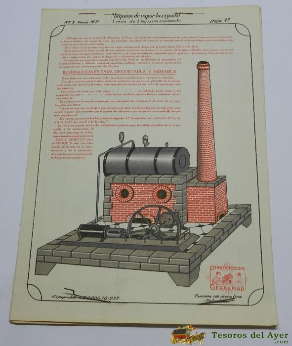 ANTIGUO RECORTABLE MáQUINA DE VAPOR HORIZONTAL GERARMAR - Nº 3 SERIE M.P - CONTIENE 5 HOJAS. MIDE 31 CM X 21 CM - RARISIMO DE ENCONTRAR, BUEN ESTADO DE CONSERVACION.
