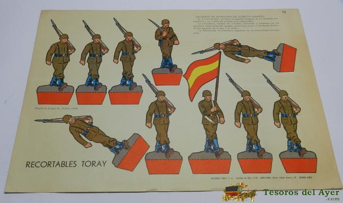 RECORTABLE SOLDADOS DE INFANTERIA DEL EJERCITO ESPAÑOL, EDICIONES TORAY, 1968, MIDE 40 X 29 CMS.
