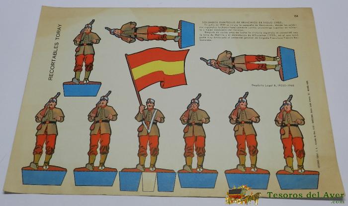 RECORTABLE SOLDADOS DE ESPAÑOLES DE PRINCIPIOS DE SIGLO 1902, EDICIONES TORAY, 1968, MIDE 40 X 29 CMS.