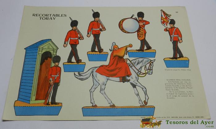 RECORTABLE SOLDADOS DE LA GUARDIA REAL INGLESA, EDICIONES TORAY, 1968, MIDE 40 X 29 CMS.