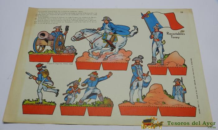 RECORTABLE SOLDADOS FRANCESES DE LA EPOCA IMPERIAL 1804, EDICIONES TORAY, MIDE 40 X 29 CMS.