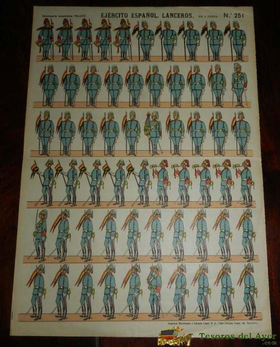 RECORTABLE PALUZIE, EJERCITO ESPAÑOL, LANCEROS, PIE A TIERRA, N. 251, MIDE 40 X 28 CMS. APROX. ESTAMPERIA ECONOMIA PALUZIE, 100% ORIGINAL, NOT COPY, NOT REEDITION, PAPER TOY SOLDIER, SOLDATENBOGEN, AUSSCHNEIDEBOGEN, SOLDATINI DI CARTA, SOLDATS à DéCOUPER