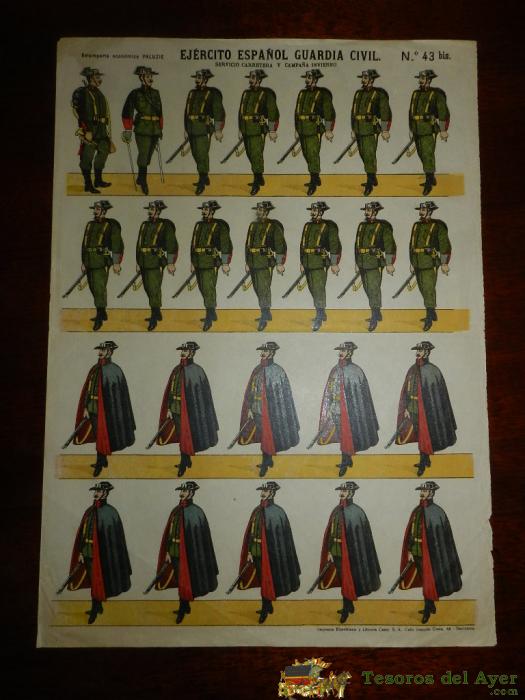 ANTIGUO RECORTABLE ED. PALUZIE - EJERCITO ESPAÑOL GUARDIA CIVIL - Nº 43 BIS - MIDE 40 X 29 CMS.