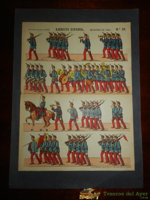 ANTIGUO RECORTABLE. ED. PALUZIE. EJERCITO ESPAÑOL. INFANTERIA DE LINEA. Nº 50. MIDE 39 X 29,5 CM.