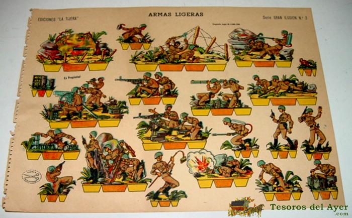 ANTIGUO RECORTABLE LA TIJERA - SERIE GRAN ILUSION Nº 3 - ARMAS LIGERAS - MIDE 33,5 X 24 CMS.