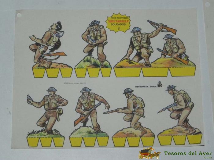 RECORTABLE ROMA, SERIE AMARILLA, 1982, SOLDADOS Nº 8, 16,5 X 21,5 CM.